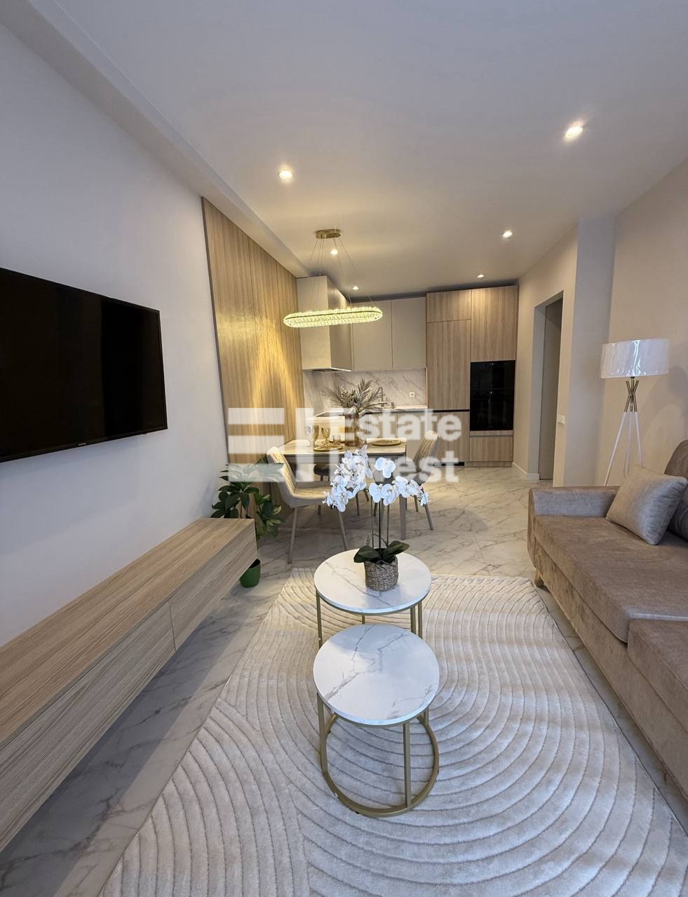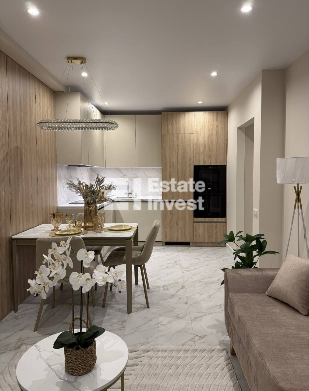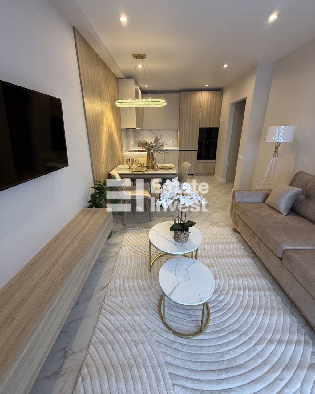 Планування: простора кухня вітальня, з обідньою зоною, окрема спальна кімната, сан вузол, коридор з вбудованими гардеробними шафами.